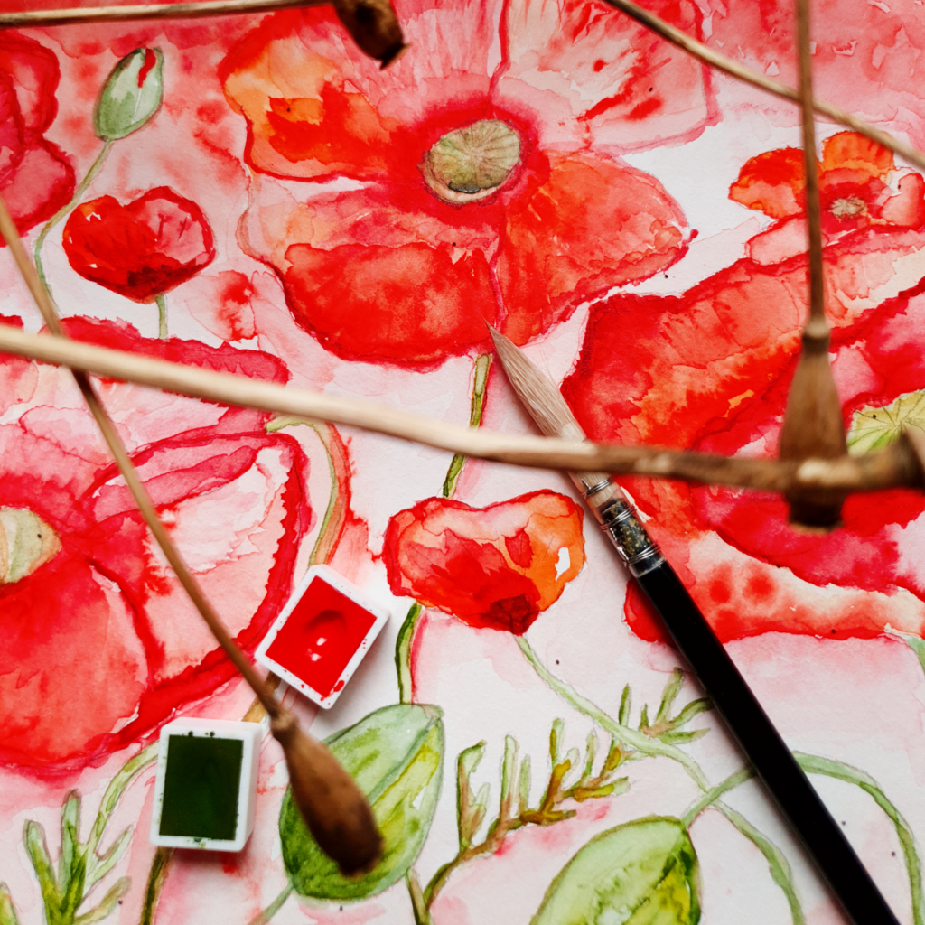 Be free 🦋 Aquarell 17×24 cm, 2025Turmfalke mit Mausi🐁🦅, Aquarell 15×21 cm, 2016Weiße Lilien💮💮💮 Aquarell 24×32 cm, 2019Mohnblumenfeld🌸🌸🌸 Aquarell 30×40 cm, 2020 Rehbocki🦌Aquarell, 17×24, 2019Wolfi🐺 Ölgemälde, 60×60 cm, 2019Toxic Love🥀 Ölgemälde, 30×30 cm, 2021